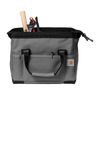 • This rugged, rough-and-tumble tool bag makes it easy to store and organize all your gear when you're in the field. At 14 inches, the main zip compartment is large enough to fit a cordless drill, plus there are plenty of pockets for hand tools. Like all Carhartt gear, this durable workhorse is built to outwork them all with its heavyweight, heavy-duty canvas that can shed light rain, an inner metal frame for • 1200D heavy-duty polyester • Rain Defender durable water repellent (DWR) • Interior metal frame for easy access into large main compartment • Dual webbing haul handles with comfort grip • 6 exterior pockets and 6 interior loops • Carhartt label sewn on front • Capacity: 24L • Dimensions: 10.5"h x 14"w x 9"l; Approx. 1,465 cubic inches • Note: Bags not intended for use by children 12 and under.