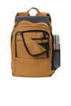 • Tough enough to take on light rain and everyday use, this pack was forged for the jobsite or campus. It comes complete with a dedicated sleeve to keep your laptop protected. • 1200D heavy-duty polyester • Rain Defender durable water repellent (DWR) • Large main compartment with dedicated 15-inch laptop sleeve and tablet sleeve • Mesh water bottle pocket • Front zippered pocket with 2 mesh pockets and key fob • Mesh side pocket • Zippered organization compartment and 2 additional front pockets • Contour-fit shoulder straps • Padded air mesh back panel • Carhartt label sewn on front • Capacity: 23L • Dimensions: 18"h x 12"w x 6"l; Approx. 1,404 cubic inches • Note: Bags not intended for use by children 12 and under.